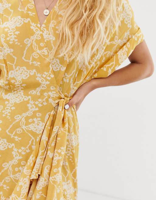 Product Item: Other stories cloud print ruffled wrap dress top in yellow